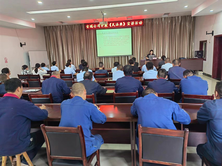 為增強企業(yè)法律及風險防范意識,優(yōu)化企業(yè)法治營商環(huán)境,5月29日,安瑞公司邀請夏縣人民法院審判委員會專職委員邊婷婷到公司開展《中華人民共和國民法典》專題講座,公司50余名干部職工參加。